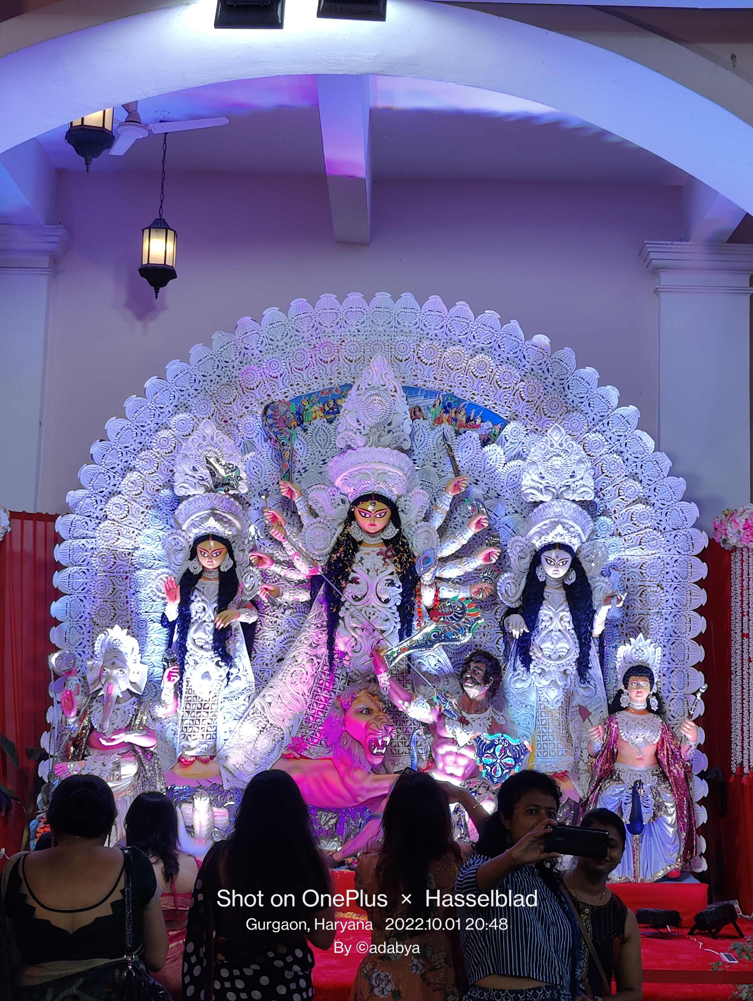 Originally, Durga Puja celebrations starts from the 6th day of the Navratri but for last few years, the pandals are thrown open to public as early as on the 4th day itself. In the pre-covid years, we used tie-up with our friends Basus and go pandal hopping with them. We renewed the arrangement and went to see the idols of Chittaranjan Park on the 5th Day or Panchami Night. Contrary to our expectations, not just the pandals but the roads leading there were quite crowded but we did managed to find parking spots within the proximity of the pandals and covered the main ones like K-Block, B-Block and Mela Ground and then hunger took us to Chungwa Restaurant at M-Block Market GK-2. The following evening, as planned we joined the Basus at DLF Club-5 at Gurugram. This was our first visit to a Durga Puja in Gurugram and we thoroughly enjoyed. Unlike the unruly crowds in most pandals in Delhi and resultant spillage of trash, this was very clean with manageable crowd. The Durga idol was much smaller compared to her Delhi counterparts but beautiful. Then of course, there was a full makeshift food court where we had the FUCHKA (Bong version of Golgappa or Paanipuri), it was so good that Sangeeta & I had two portions each. From there we moved on to Shushant Lok pandal which was what one expects from a typical suburban puja pandal, it was dusty and loud Hindi Bollywood musical program being performed on the stage in front of motley crowd. Our last stop before heading home was DLF Phase 2 Puja where I had Mughlai Porota, it was less oily than what you get in Chittopark but the filling of mutton was below expectations.