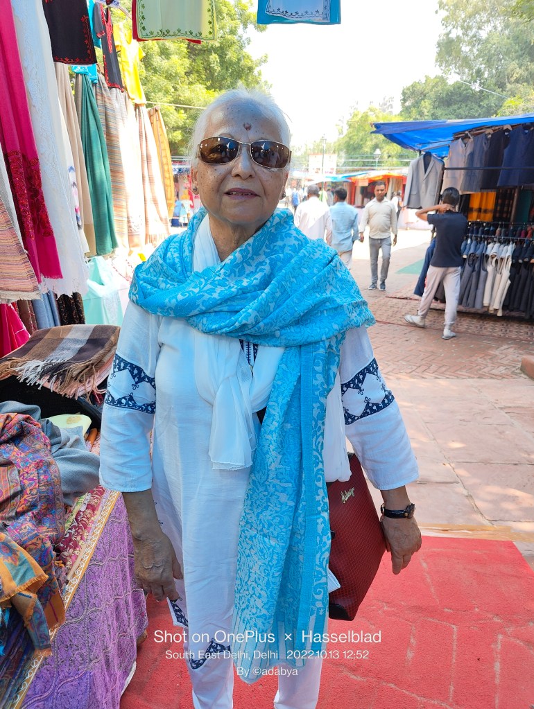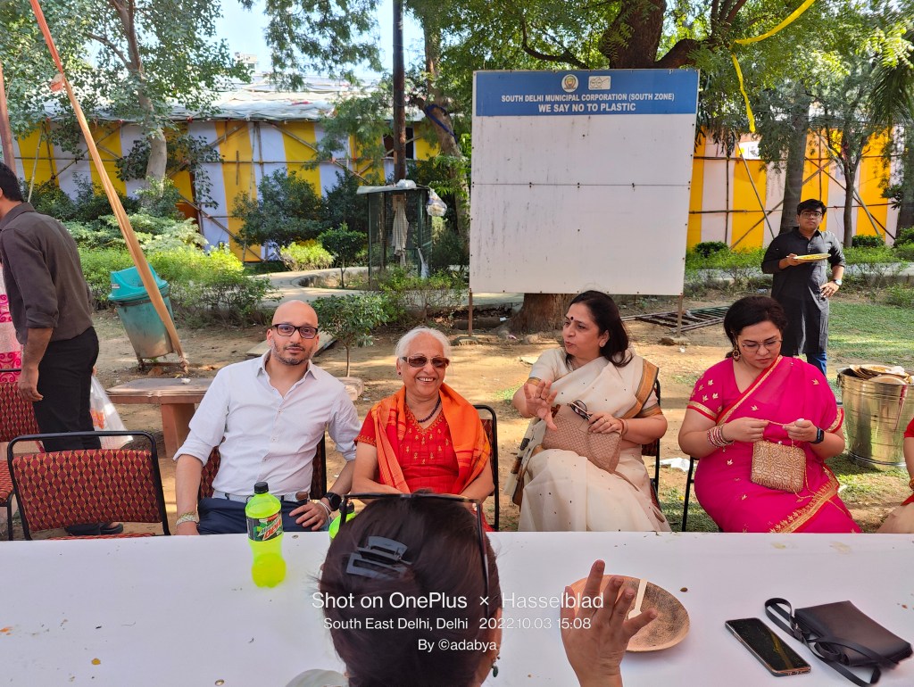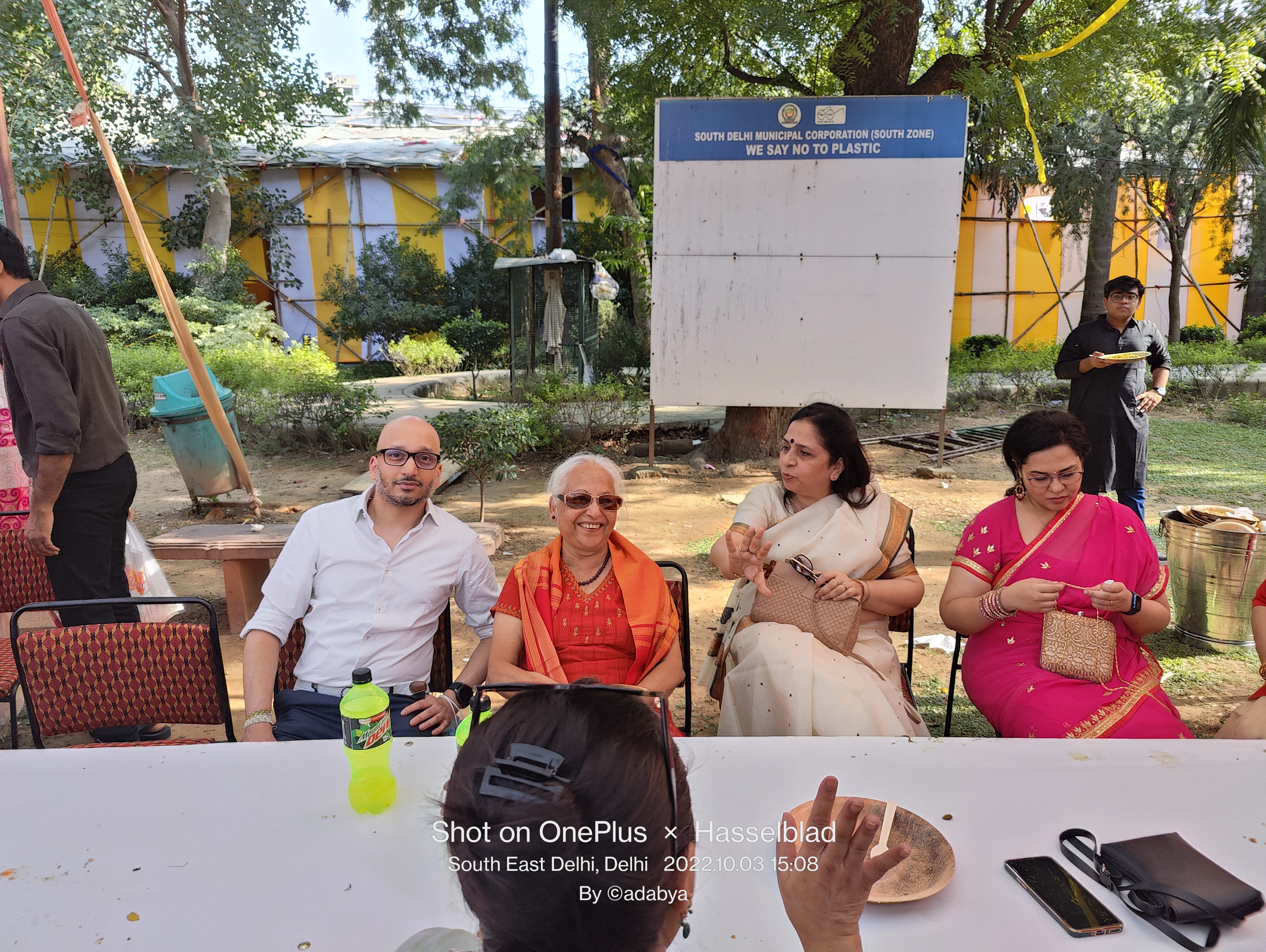 Following day, Maha Navami, I took Hans to my brother’s home to try out a designer Kurta that he had bought for him and then took him to Chittopark to check out pandals of K-Block & B-Block. Later in the evening, we went to Paschim Vihar Puja Pandal to meet my second sister, Mezdi who turned 76 years young that day. We visited 2 of the puja pandals in Paschim Vihar and also had first time experience of riding on the e-Rickshaw while traveling between the 2 pandals. Frankly, it was nerve wracking the way it was driven, the foreigners – Didi & Hans stopped short of screaming while I kept a stoic silence.