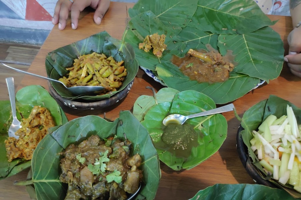 At the end of the tour of Mandu Fort lasting 5.5 hours, we were exhausted and hungry as well. The contact person (Mr. Patankar) was at the gate to meet us and took us to the guest house to freshen up and then lead us to Sri Sai Baba Guest House Restaurant serving local (Malwa) cuisine, for lunch. Always enthused in trying out local delicacies, we ordered Kadhi Pakodi, Dal Paniye and Dal Bafley served with plain boiled rice. I can tolerate reasonably spicy food but the Paniye and Bafley were on a different level altogether and it got multiplied when I accidentally bit a very hot green chilli. Water flowed from my eyes and nose while fire came out from my ears and mouth. Amalda’s sister-in-law, Shraboni suggested to put a pinch of salt in the mouth to subdue the spiciness. Oh boy, it worked and I became normal in a jiffy. Great learning.